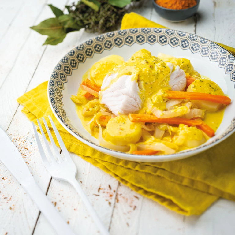 Dresser les légumes, les pommes de terre et le colin dans une assiette bien chaude.
