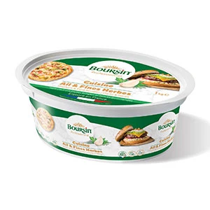 Récupérer 2 litres de bouillon de cuisson et le mixer avec les 100 g d’ail, l’huile d’olive (500 ml) et les 2 kg de Boursin® Cuisine pour réaliser une belle émulsion, ajouter des