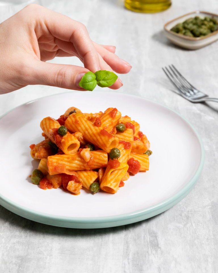 Ajouter les câpres, les tomates, les olives et 9 kg de Sauce Pomodoro et Basilico Barilla, puis détendre l’ensemble avec l’eau de cuisson des pâtes, laisser mijoter l’ensemble environ 30 min.