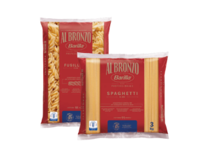 Cuire 9 kg de Tortiglioni Barilla Al Bronzo pendant 6 min (conserver 2 à 3 L d’eau de cuisson)